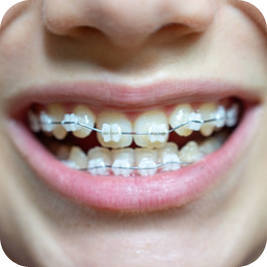 치아 색상과 매우 흡사한 세라믹 브라켓은 교정 중에도